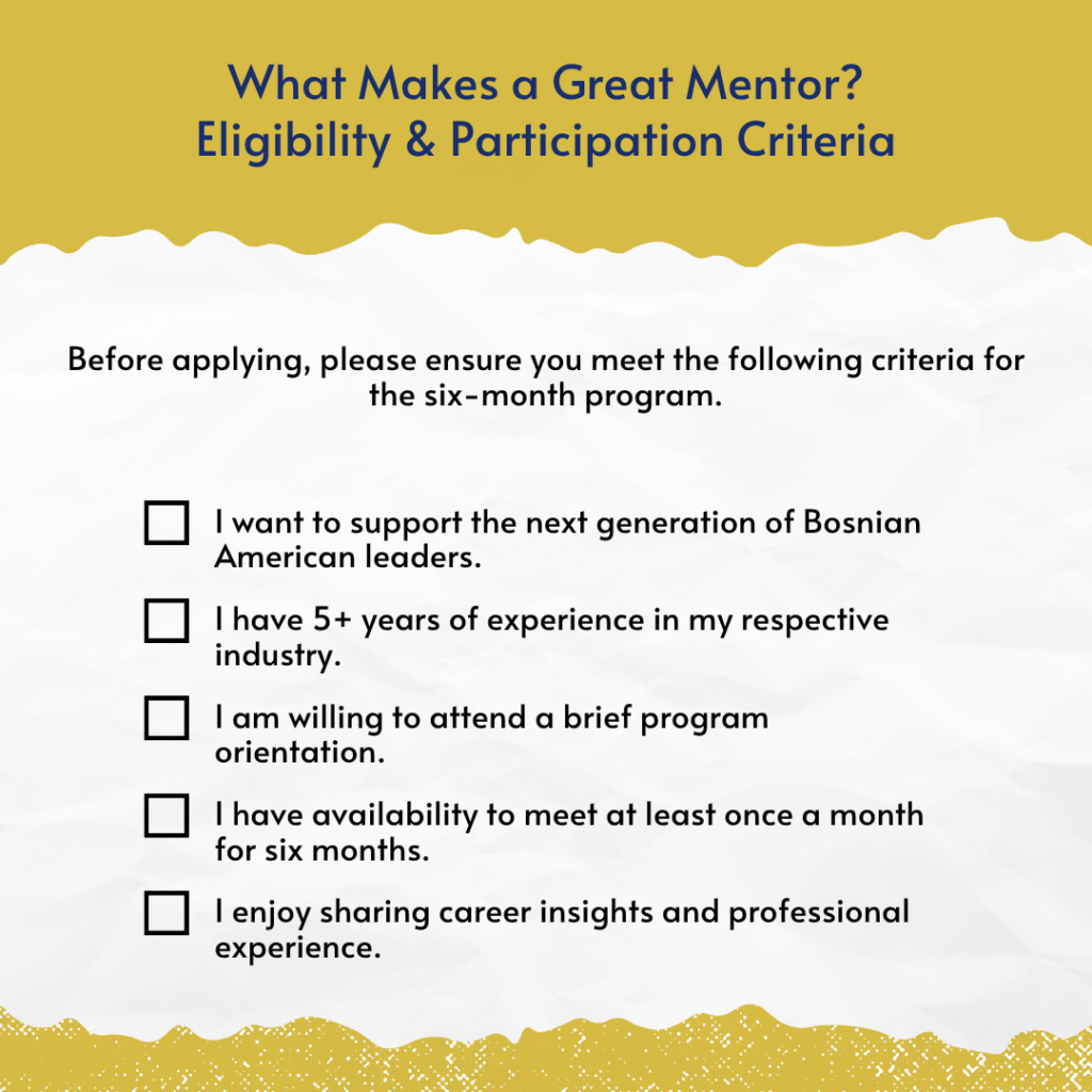 Opportunities to build relationships within the Bosnian American professional community.